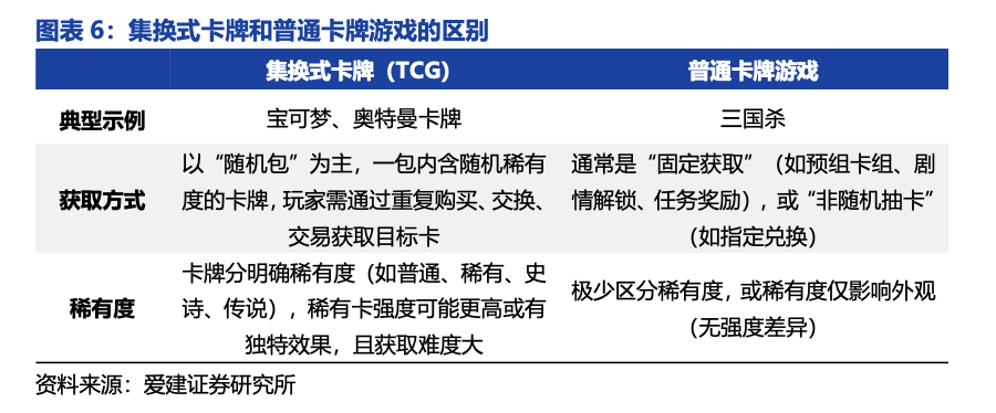 尽管收藏卡牌与传统集换式卡牌存在显著差异,但在行业统计口径中,常将其纳入广义集换式卡牌范畴,因此在市场分析中需结合具体消费场景与用户需求进行区分研究。集换式卡牌更强调是基于集换式卡牌这个产品载体的内涵更宽泛的策略玩法,而如今在中国市场备受关注的“卡牌”语境则更接近收藏卡牌。