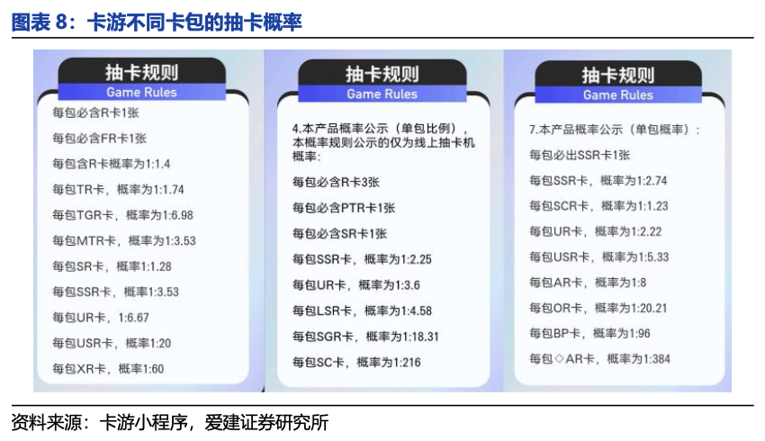 盲盒抽卡模式通过制造不确定性,精准拿捏了消费者的心理诉求,成为刺激卡牌消费的核心引擎。盲盒抽卡模式的精妙之处在于赋予购买行为以“未知性”,玩家购入卡包时,无法预知其中的卡牌构成,尤其是稀有卡牌极低的出现概率,进一步放大了开包时的紧张与期待。这种稀缺机制如同心理催化剂,将开卡瞬间的惊喜感转化为强烈的情感反馈,促使玩家不断复购,试图通过重复消费解锁稀有卡牌。从心理学角度看,每一次开包都是对“即时满足”的追逐,而盲盒模式通过延长期待与结果之间的张力,持续激发消费者的购买冲动,推动卡牌市场的需求增长。