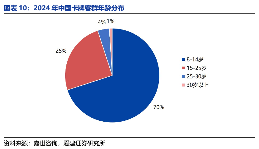 线下门店调研数据显示,70%的线下购买者为小学生。从线下门店调研来看,70%的卡牌购买者是小学生,而线上购买人多是小学生家长,因此小学生是核心消费群体。15-25岁中青年学生群体是第二大消费群体,消费占比呈上升趋势,他们更偏好成熟IP卡牌,借经典内容寻求情感共鸣与收藏价值。此外,25岁以上上班族群体因童年情怀延续或潮流文化追随,以约5%的消费占比成为卡牌消费的补充力量,多元群体共同构建起卡牌消费生态。
