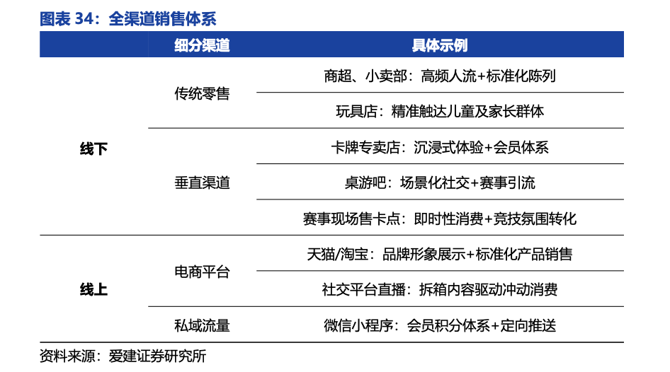 线下渠道广泛布局,营造沉浸式消费体验。线下渠道在卡牌产业全渠道网络覆盖中至关重要。卡牌厂商通过与玩具店、书店、便利店等各类零售终端合作,广泛布局线下销售网点,让消费者能够在日常生活中方便地接触到卡牌产品。同时,一些大型卡牌专卖店、主题体验店也不断涌现,不仅销售卡牌,还为玩家提供了沉浸式的消费体验空间,在这些店铺中,玩家可以参与卡牌对战活动、交流收藏经验,还能购买到限量版、定制版的卡牌产品。此外,卡牌厂商还会在漫展、游戏展会等线下活动中设置展位,展示最新的卡牌产品和玩法,吸引更多人了解和购买卡牌,进一步拓展了消费场景,推动卡牌从圈层文化向大众市场渗透。