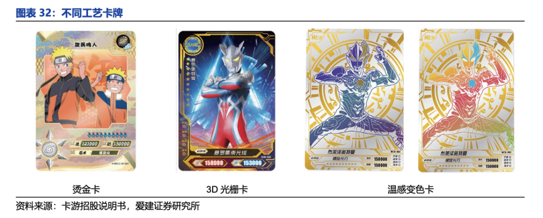 具有激光全息防伪全产业链优势,是业内极少数拥有激光全息防伪完整产业链的企业之一。公司掌握激光全息防伪、铂金浮雕工艺等关键环节技术,卡游的高阶SR卡(稀有卡)主要由公司负责,其微纳米压印技术可实现卡牌动态光变、3D立体效果,显著提升产品收藏价值。