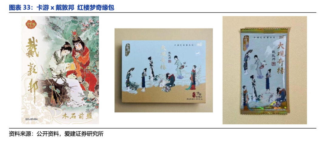 在分层定价与动态运营策略下,卡牌行业构建起兼顾流量与利润的商业模型。基础款以2-10元/包的盲盒卡包作为流量入口,通过高频次复购形成稳定现金流(卡游2024年营收100.6亿元,基础款盲盒贡献了主要消费频次);限量款则聚焦联名IP与稀缺属性,例如卡游与中国知名国画大师戴敦邦合作推出中国四大名著集换式卡牌,2023年出品的红楼梦奇缘包,打造红楼梦国风系列高端收藏卡,售价20元/包,199元/盒,创造高毛利空间。衍生服务层面,拆卡直播通过互动式消费场景激发用户参与感,定制卡膜、卡牌评级等增值服务则进一步延长产品生命周期,形成“购买-收藏-衍生消费”的闭环生态。