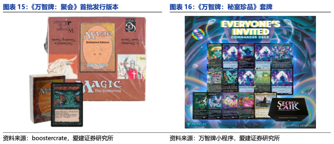 通过IP生态构建挖掘核心客群,实现社交裂变传播。1)在卡牌行业,热门IP能够吸引大量忠实粉丝。比如卡游公司推出的奥特曼系列卡牌,借助奥特曼这一全球知名的特摄IP,精准触达从小就热爱奥特曼形象和故事的核心客群。他们不仅会因为对IP的热爱而主动购买卡牌,还会深入研究卡牌的稀有度、收藏价值等,形成了稳定且具有高消费意愿的核心客群。同样,宝可梦、火影忍者等知名IP的卡牌,也都凭借着对IP粉丝的精准触达,在市场上获得了巨大成功。2)除了单纯的卡牌产品,还通过丰富IP衍生内容来强化社交裂变效应。以宝可梦为例,除了卡牌游戏本身,还有动画、漫画、电影等多种衍生形式。动画中精彩绝伦的卡牌对战情节,激发了观众对实体卡牌的兴趣,促使他们购买卡牌去模仿动画中的对战场景。同时,玩家们会在社交媒体、线下游戏社群等平台上分享自己的卡牌收藏、对战视频等内容,吸引更多人关注并加入宝可梦卡牌的玩家群体中。此外,一些卡牌厂商还会举办基于IP的线下活动,比如主题卡牌比赛、粉丝见面会等,让玩家们有机会面对面交流,进一步增强了玩家之间的社交联系,加速了IP在社交网络中的裂变传播,吸引更多潜在消费者进入卡牌市场。
