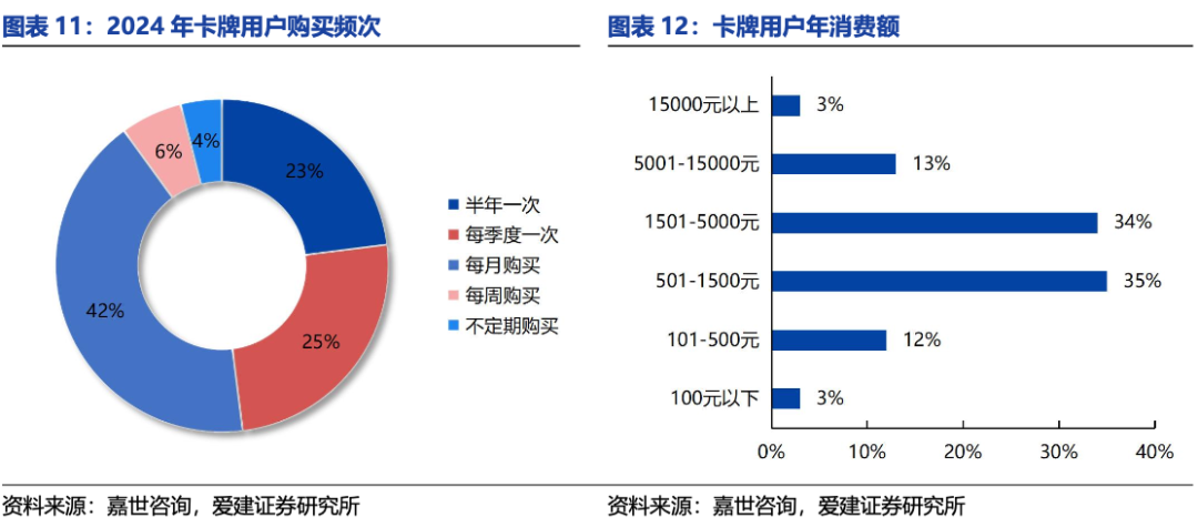 卡牌消费市场呈现出显著的用户高黏性与强付费特征。根据嘉世咨询的调研,约42%的消费群体保持着每月稳定采购卡牌的习惯,这一数据充分印证了该领域用户群体具备较高的消费持续性与品牌忠诚度。