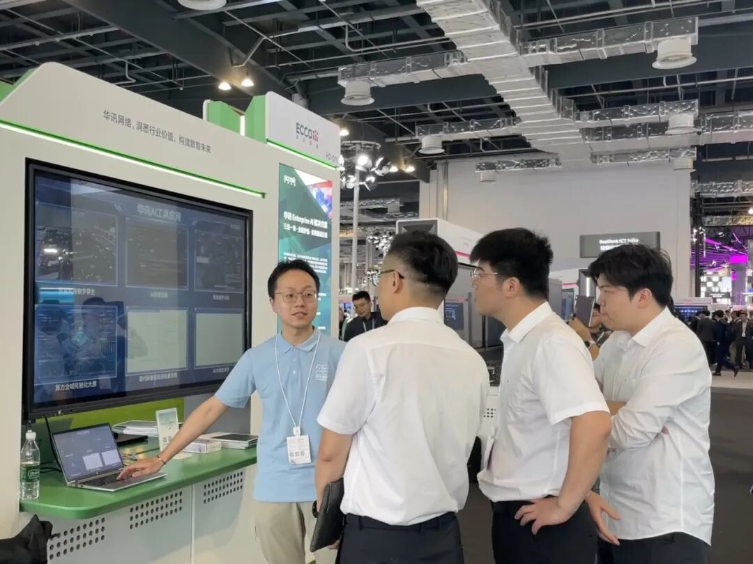 同期,华为高级副总裁李鹏及多位高管走访华讯展厅,参观AI Lab演示,并与华讯团队进行了深入交流和探讨。