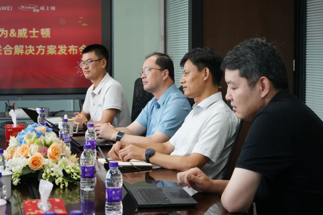 来自华为的中国政企解决方案副总裁董伟嗣、中国政企解决方案伙伴运营主任李舜、中国政企解决方案伙伴运营经理胡俊杰、中国政企智能制造行业解决方案架构师刘鑫强与威士顿的董事长殷军普、智能制造事业部总经理王季强、金融数据服务事业部总经理陆舟、行业及政府事务经理陈长亮等嘉宾共同出席发布会,并在现场研讨方案细节。