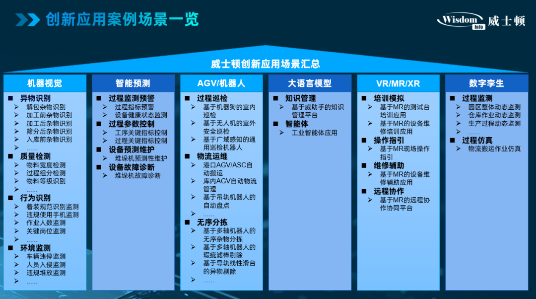 在此之上,威士顿依托多年深耕智能制造的经验和技术积累,将细分行业的场景需求与行业知识深度融合,自主研发出多款AI算法,衍生出丰富的创新应用。智能工厂解决方案可广泛赋能众多工业场景,实现工艺参数实时优化、在线外观检测、设备状态预测、物料/产品在线分拣、生产排程优化、生产安全智能管控等智能化应用,助力制造企业提质增效、降本减耗、科学决策与安全可控,全面释放智能制造的生产力。同时,威士顿自主研发一款大数据平台运维软件——大数据管理之星 Stars,通过智能化集群管理与运维,帮助企业降低运维复杂度、提升数据治理能力、释放数据价值,为数智化转型提供坚实支撑力。