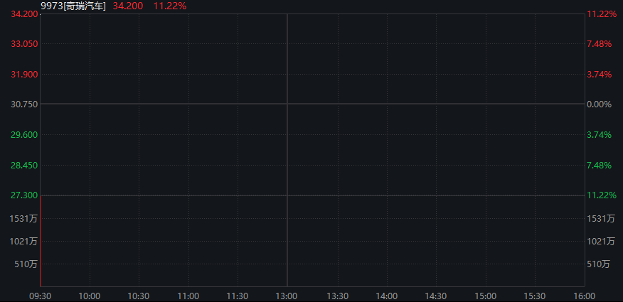 港股今年最大车企IPO诞生,奇瑞汽车正式在港交所上市,开盘涨超11%。