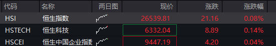 恒指高开0.07%,恒生科技指数跌0.13%。