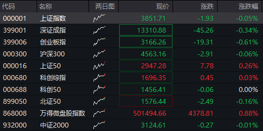 A股:截至发稿,沪指跌0.05%,深成指跌0.34%,创业板指跌0.61%。