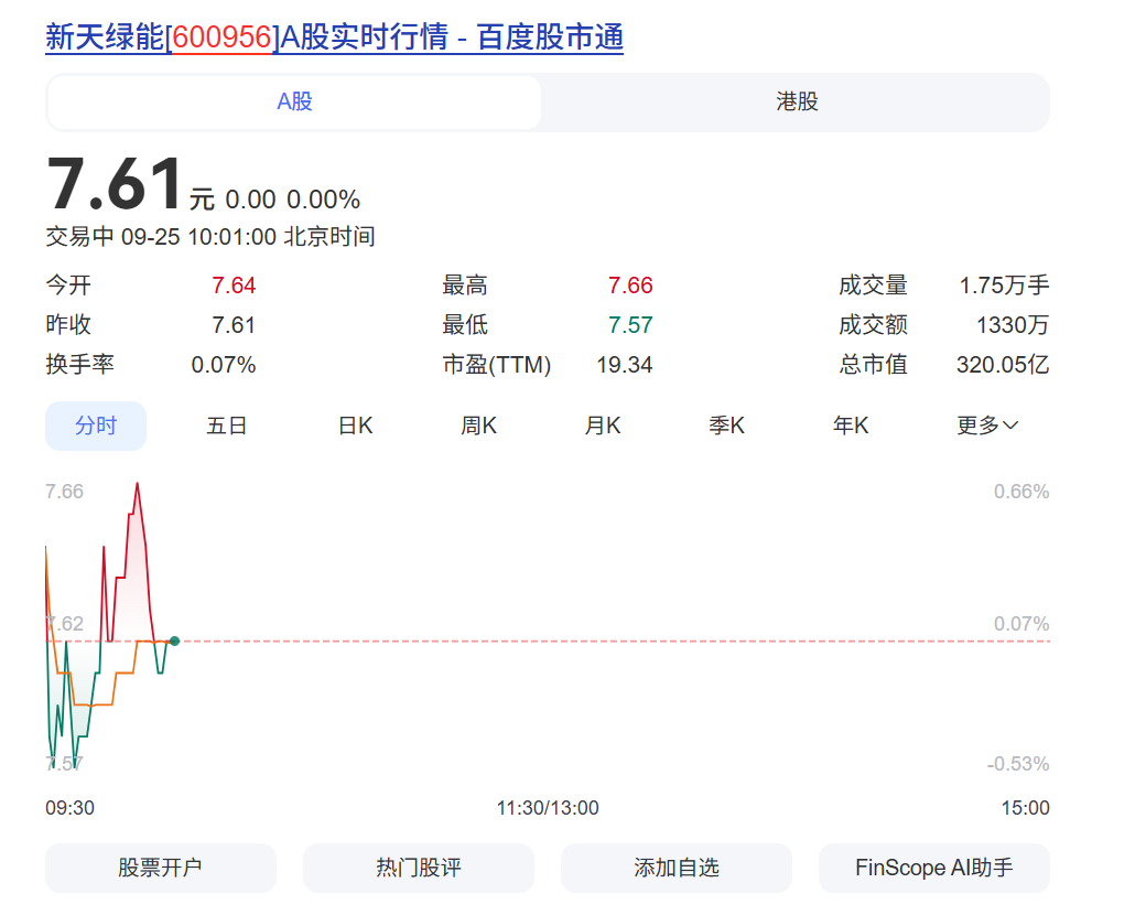 买了谁的股票? 新天绿色能源股份有限公司(简称“新天绿能”,主业是风电等新能源和天然气)。