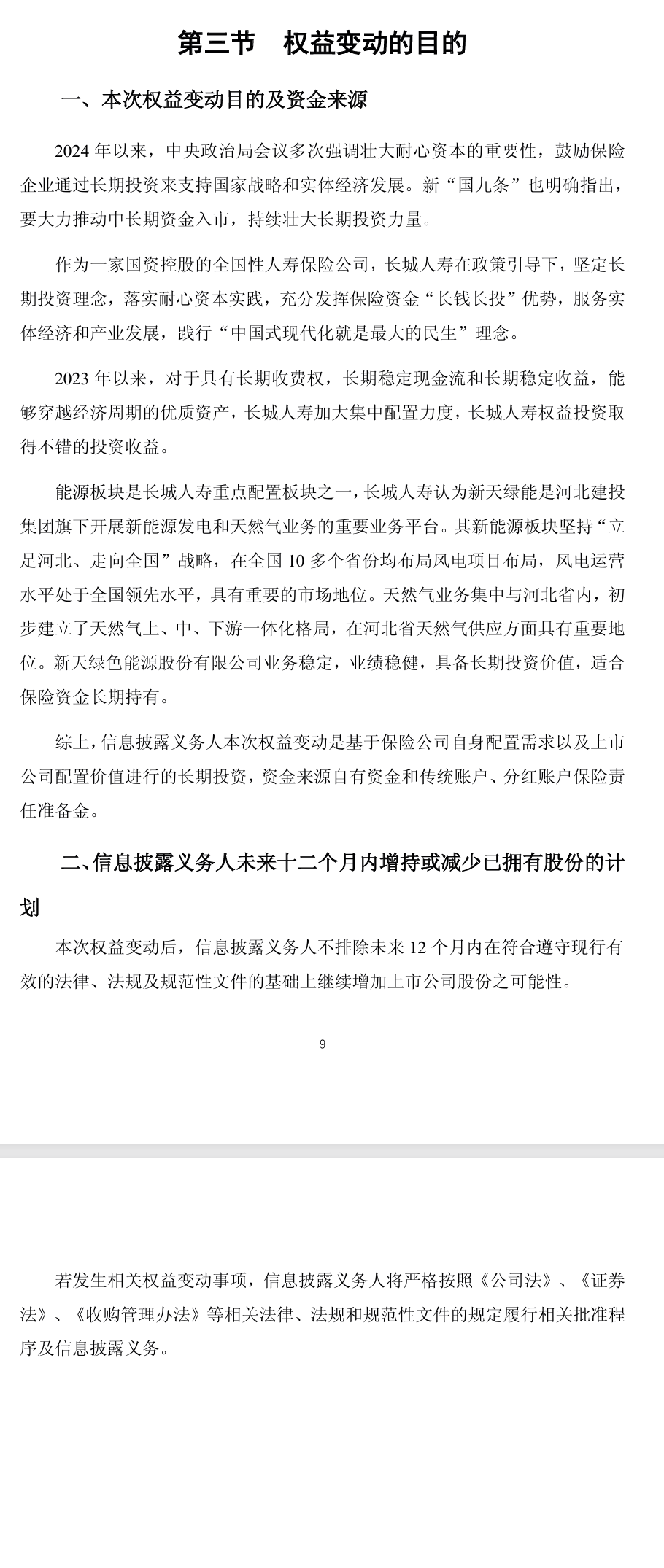 结果如何? 买完之后,长城人寿总共持有新天绿能5.0027%的股份,越过了5%的“举牌线”。