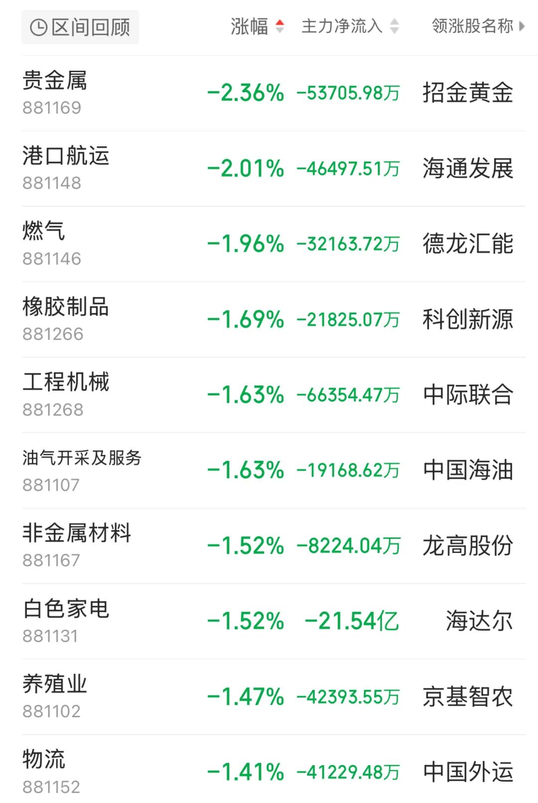此外,算力硬件、风电设备等板块均有所异动。港口航运板块集体调整,南京港、宁波海运、宁波远洋跌幅居前。工程机械板块同样震荡走低,山河智能、华东重机、安徽合力领跌。