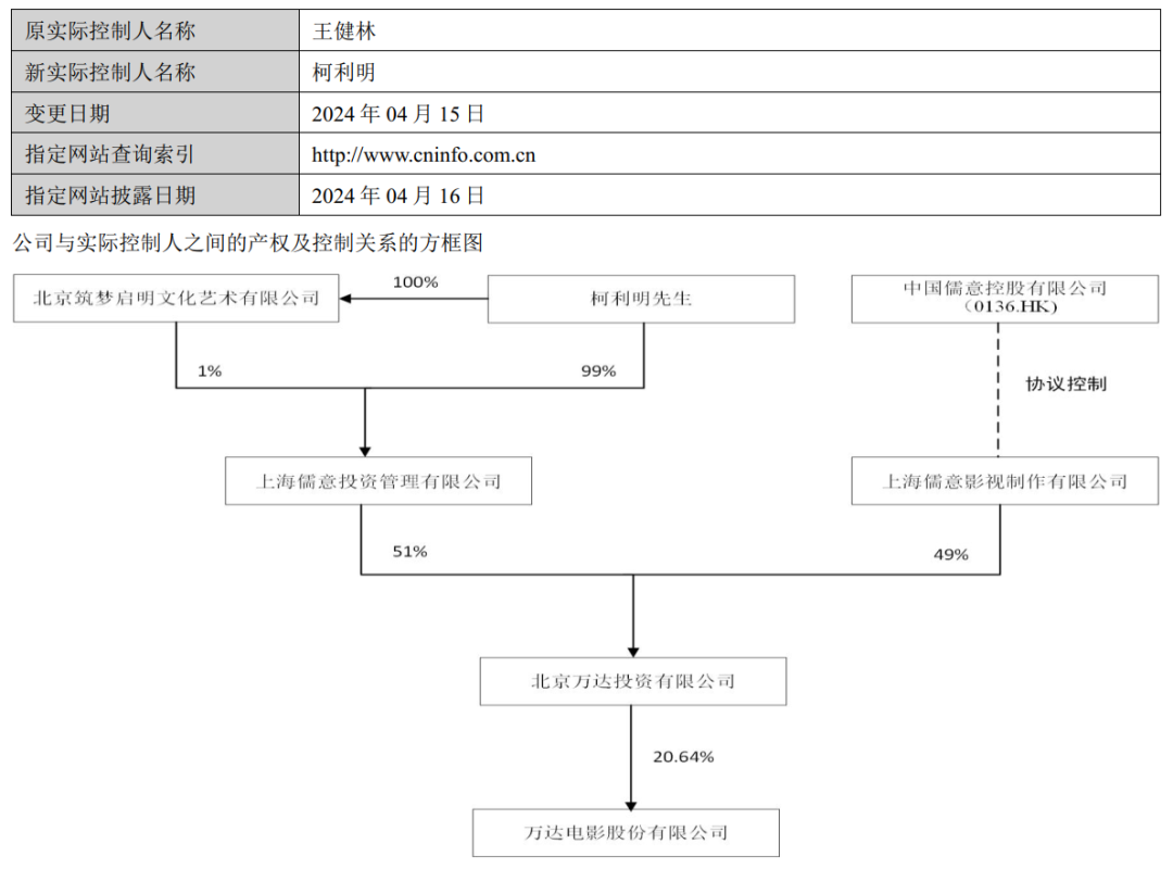 2023年前后,王健林旗下公司分批向柯利明和中国儒意转向万达电影股权。到2024年初,柯利明取代王健林成为万达电影的实际控制人。近期,王健林的一致行动人再度减持万达电影,大有完全退出之意。