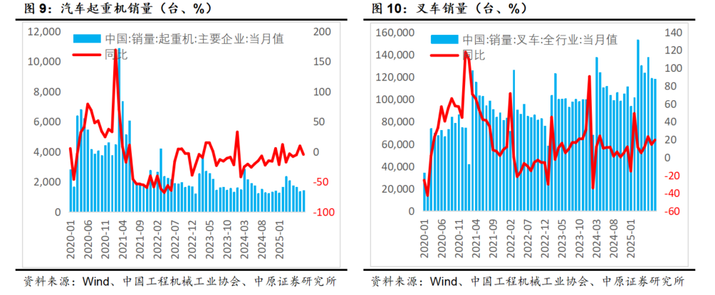 【8月汽车起重机销量1434台,同比下降4.65%】。据中国工程机械工业协会对汽车起重机主要制造企业统计,2025年8月,销售各类汽车起重机1434台,同比下降4.65%。其中,国内销量736台,同比增长28.2%;出口量698台,同比下降24.9%。