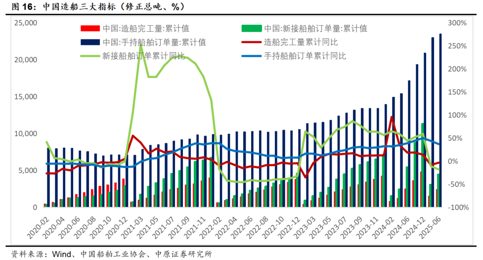 造船三大指标:上半年造船完工量、新接订单量同比小幅下降,手持订单量仍增长36.7%