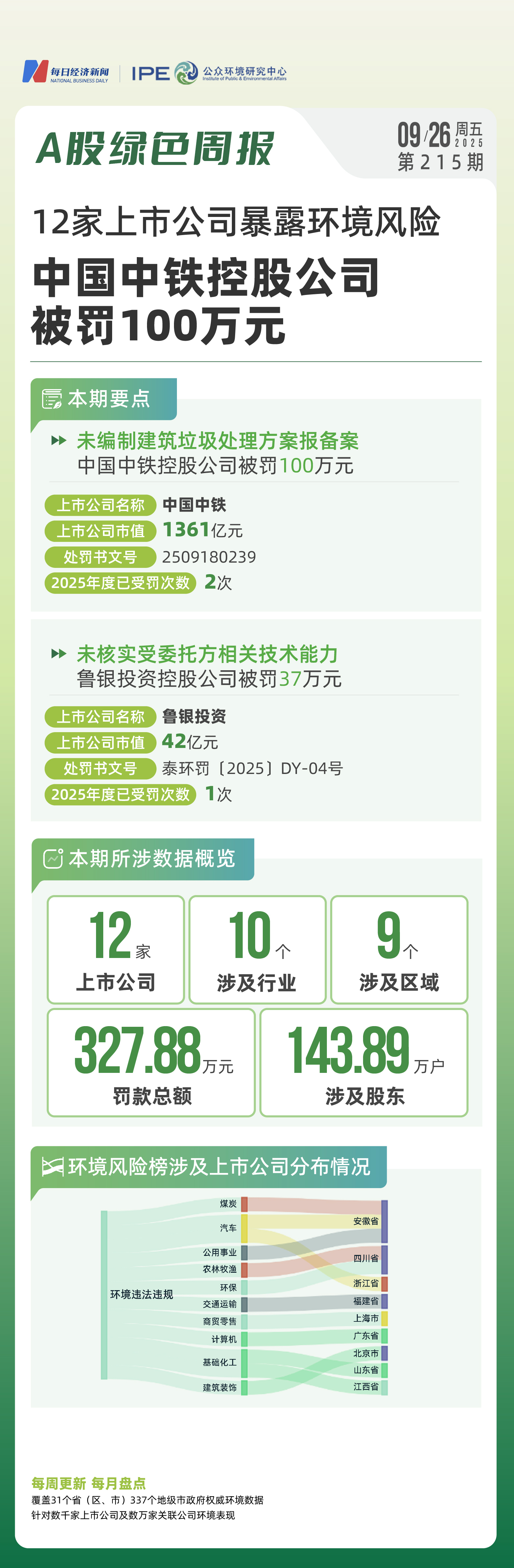 2025年9月第三周至第四周,哪些上市公司的环境保护与信披责任亮起了红灯?且看A股绿色周报第215期。