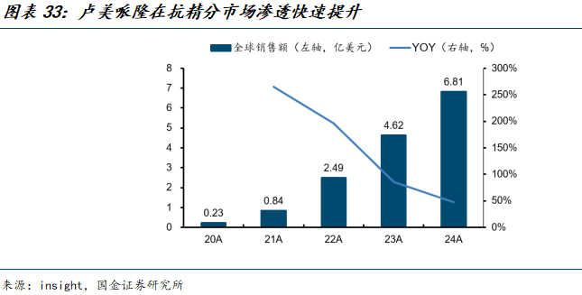 创新,麻醉1类新药叩关NDA,CNS管线有望陆续兑现。(1)自研麻醉1类新药NH600001于25年8月递交NDA(上市申请),该药有望成为2019年后全球第六款上市的麻醉创新药。迭代的1类新药有望接力依托咪酯,打开更高的商业化空间。(2)公司CNS(中枢神经)管线可对标海外大单品,相关分子市场空间广。抗抑郁,公司YH1910-Z02/01、NH102分别完成Ⅱ期及正推进Ⅱ期临床,海外同类竞品为强生的SPRAVATO,该药2024年销售已超10亿美金;抗精分,公司NHL35700即将进入Ⅲ期临床,海外同类竞品为利培酮及卢美哌隆,其中强生对卢美哌隆全球销售峰值指引达50亿美金,在此背景下,NHL35700后续商业化表现值得期待。