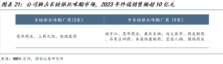 在长链依托咪酯的销售优势基础上,公司NH600001可实现协同与迭代:长链依托咪酯注射剂临床常用于全麻诱导,也可用于短时手术麻醉、麻醉辅助等,目前已纳入全国医保乙类药目录。据米内网数据显示,近年来该药在中国公立医疗机构终端销售额不断攀升,2023年超11亿元,同比增长11.46%;2024上半年已超6亿元,同比增长11.53%,且目前由公司独占该产品市场。我们认为,凭借迭代放量逻辑,未来NH600001上市之后,公司可凭借长链依托咪酯的销售经验及渠道优势,能够快速实现NH600001的商业化放量。