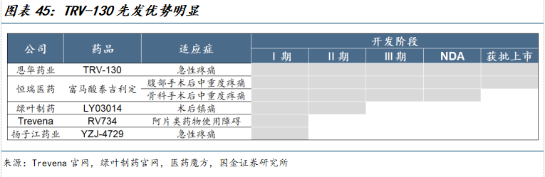 3.2 TRV-130为急性疼痛突破性疗法,改善成瘾性、同类阿片受体激动剂潜在最佳