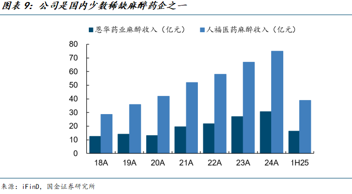 公司在精麻领域的领先行业地位主要由两方面的因素保障:①长久深耕精麻细分赛道、具备先发优势,其对中枢神经药品的研发、生产积累了丰富的经验,同时在精麻药品的销售中也沉淀了广泛的资源;②部分精麻药品具备高壁垒特性、竞争格局好,尤其是部分具备红处方资质的麻醉镇静和麻醉镇痛药品,其定价、生产、经营都受到国家严格管制,因此麻醉行业特性决定参与企业数量少、行业地位高。
