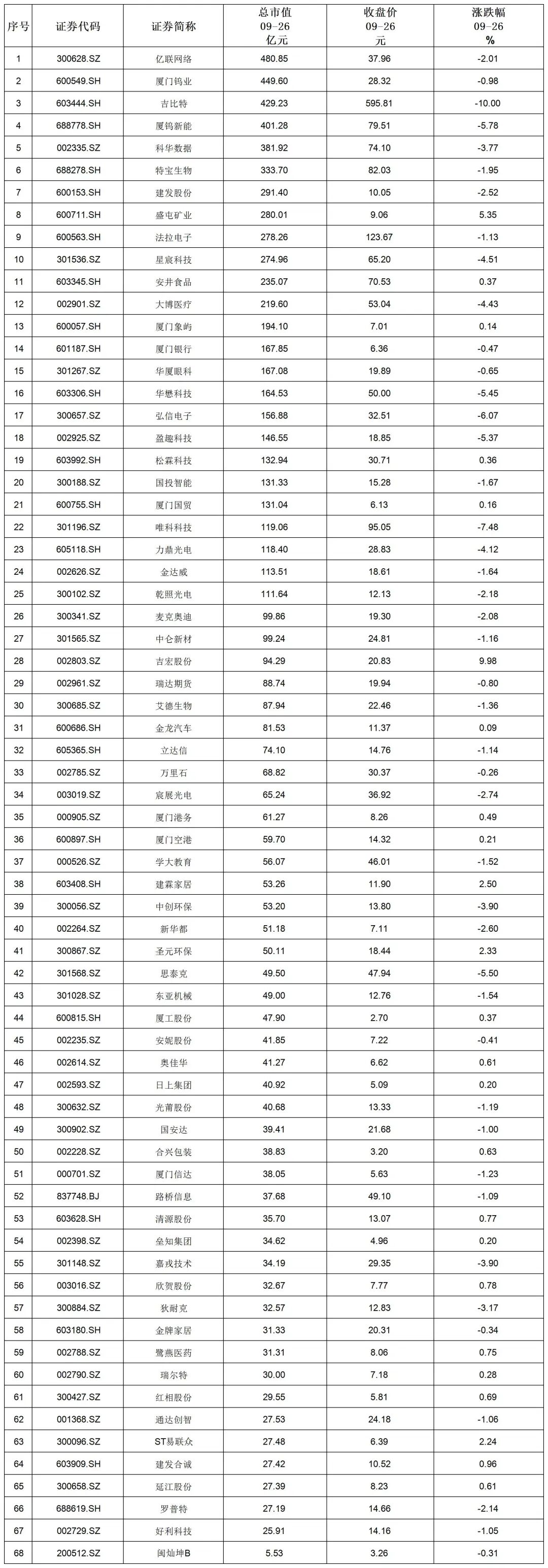 9月26日,上证综指下跌25.20点,跌幅0.65%,收盘于3828.11。辖区内上市公司总计68家,总市值7980.81亿元。辖区上市公司吉宏股份涨停,辖区上市公司吉比特跌停。
