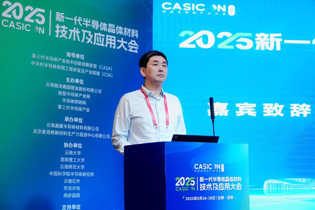 9月27日,2025新一代半导体晶体材料技术及应用大会在昆明开幕。本次会议在第三代半导体产业技术创新战略联盟(CASA)、中关村半导体照明工程研发及产业联盟(CSA)指导下,由云南临沧鑫圆锗业股份有限公司、极智半导体产业网、半导体照明网、第三代半导体产业主办。云南鑫耀半导体材料有限公司、北京麦肯桥新材料生产力促进中心有限公司承办。云南大学、昆明理工大学、云南师范大学、中国科学院半导体研究所、云锗红外、华光光电、南砂晶圆等单位协办,赛迪智库集成电路研究所、山东大学、晶体材料全国重点实验室、山东省高功率半导体激光与应用重点实验室等支持。