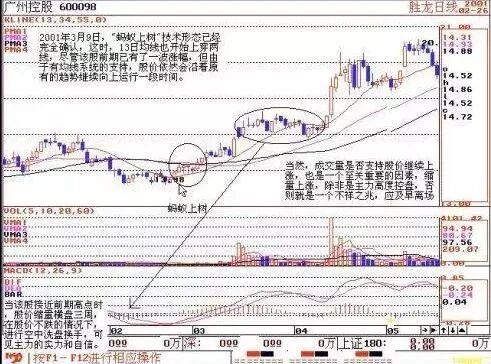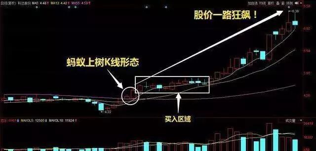 “蚂蚁上树”是指个股有超大能够性走牛的K线技术形状,普通出如今股价的底部地区,是股价见底开始转强的标。中心要点是温暖低量小阳线迟缓推进,然后带量大阳(最好是涨停板)打破中线组起来的形状。