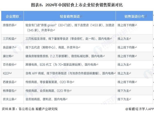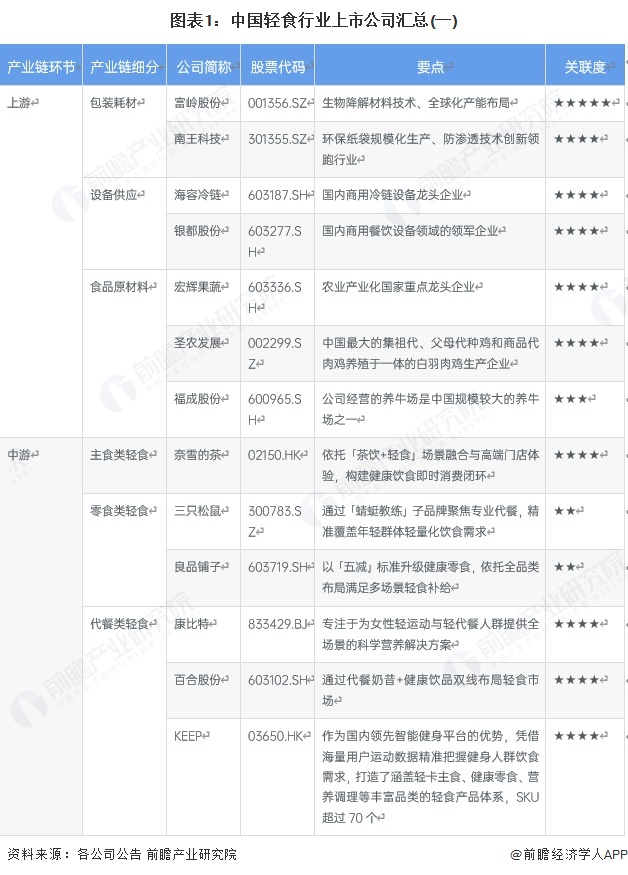 行业主要上市公司:奈雪的茶(02150.HK)、三只松鼠(300783.SZ)、良品铺子(603719.SH)、康比特(833429.BJ)、KEEP(03650.HK)等