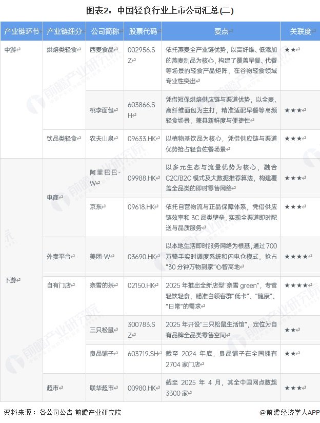 从中国轻食产业链企业区域分布情况来看,轻食产业链相关企业的分布地点多集中于经济较发达、消费市场活跃及产业链配套完善的地区,且涵盖境内外多地资本市场上市主体。