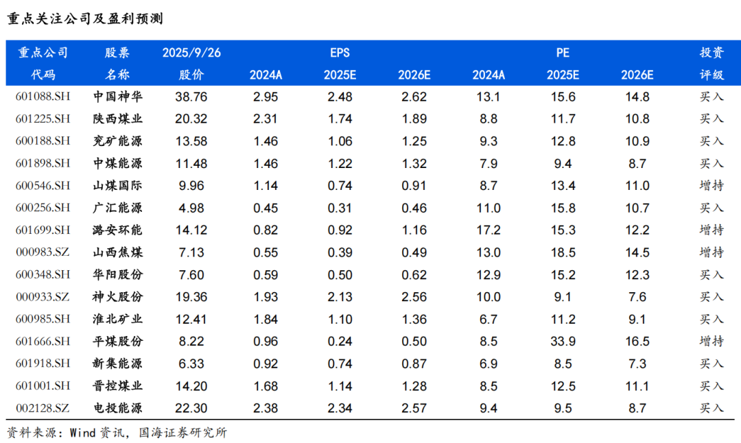 美国关税新政落地对市场情绪构成一定冲击,市场寻求稳健性资产,煤炭高股息、现金奶牛的投资价值属性值得关注。同时年内国家能源集团、山东能源集团、中国中煤能源集团等多家煤炭央国企对旗下上市公司启动增持与资产注入计划,亦释放利好,彰显煤企发展信心、增厚企业成长性与稳定性。从大方向来看,煤炭开采行业供应端约束逻辑未变,需求端可能阶段性起伏波动,价格亦呈现一定震荡和动态再平衡,头部煤炭企业资产质量高,账上现金流充沛,呈现“高盈利、高现金流、高壁垒、高分红、高安全边际”五高特征。建议把握低位煤炭板块的价值属性,维持煤炭开采行业“推荐”评级。重点关注:(1)稳健型标的:中国神华、陕西煤业、中煤能源、电投能源、新集能源。(2)动力煤弹性较大标的:兖矿能源、晋控煤业、广汇能源。(3)焦煤弹性较大标的:淮北矿业、平煤股份、潞安环能、山西焦煤。