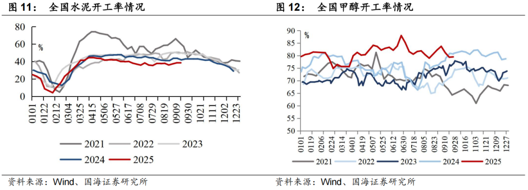 本周全国甲醇开工率环比上升:截至9月25日,全国甲醇开工率为79.5%,周环比上升0.1pct。