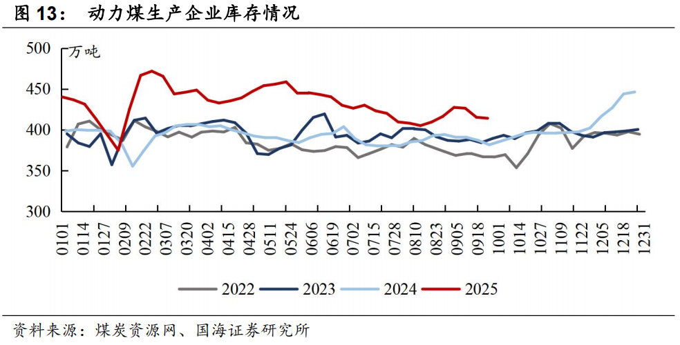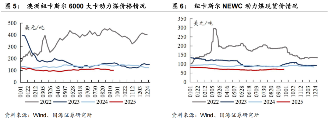 近期动力煤市场小结及展望:本周(9月19日-9月26日)港口煤价环比下降3元/吨,坑口煤价延续上涨,山西、内蒙古、陕西坑口价格分别周环比上涨19.00、13.00、3.00元/吨。具体来看,(1)生产端,截至9月24日,三西地区样本煤矿产能利用率环比上升1.12pct,主要系部分煤矿倒工作面结束恢复正常生产所致。(2)运输端,本周市场发运环比分化,大秦线日均发运量周环比增加5.96万吨,呼铁局日均批车数周环比减少4列。(3)进口煤方面,受台风天气影响,国际海运费呈现上涨趋势,进口煤到岸成本高企,进口煤价格优势环比略有收窄。其中印尼煤方面,尽管当地部分煤炭生产运输逐渐从降雨影响中恢复,但10月市场货源预计仍较有限,叠加行业大会临近,支撑印尼煤出口报价坚挺。澳煤方面,近日纽卡斯尔港拥堵有所缓解,但因部分煤炭装期延误仍达两周左右,制约现货流通效率,澳大利亚高卡动力煤价格持稳运行。(4)需求端,当前正值动力煤淡季,随着多地气温转凉,电厂日耗回落,本周沿海/内地电厂日耗周环比分别下降18.6/35.1万吨。(5)电厂库存方面,9月24日沿海+内陆25省电厂库存12555.6万吨,同比提升691.1万吨,电煤用户采购节奏提高,东北地区部分终端开始进行冬储采购。(6)非电需求端,下游冶金、化工等终端补库需求稳定,本周化工耗煤环比上升1.65%,铁水产量本周环比上升1.33 万吨,水泥开工率截至9月18日环比持平。(7)港口端,截至9月26日北方港口库存周环比上升7.30万吨,同比下降220.00万吨,截至9月22日南方港口库存周环比下降40.00万吨,同比下降97.00万吨。整体来看,本周受部分煤矿倒工作面和停产整顿影响供给端有所收紧,需求端,终端节前采购接近尾声、电厂日耗环比回落,供需双降下港口库存环比小幅上升,港口煤价本周小幅回调,本周港口动力煤701元/吨(周环比-3元/吨),但基于发运成本高企叠加节后大秦线检修预期,港口调入存在制约,同时港口库存仍同比低于去年,预计煤价下方有支撑,煤价短期维持震荡走势。