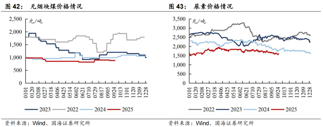 本周无烟煤市场小结及展望:产地方面,主产区煤矿开工率小幅下滑,部分矿井因井下条件限制导致块煤产出率偏低,供应收紧;需求端,临近国庆假期,下游用户采购积极性有所提升,节前备库需求逐步释放,本周无烟煤价格环比持平。尿素方面,需求端改善有限,局部农业需求略有好转但工业需求支撑乏力,本周尿素价格环比下降。
