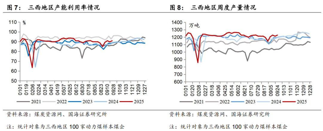 本周三西地区产能利用率、产量环比上升:截至9月24日,三西地区产能利用率为90.94%,周环比上升1.12pct,三西地区周度产量为1228万吨,周环比上升15万吨。