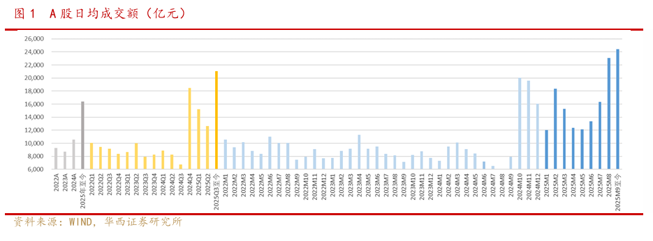A股成交:本周A股日均交易额23,132亿元,环比减少8.1%,同比增加17.5%。2025年第三季度至今日均成交额21,062亿元,较2024年第三季度日均交易额增加212.2%。2025年至今日均成交额16,423亿元,较2024年日均交易额增加89.0%。