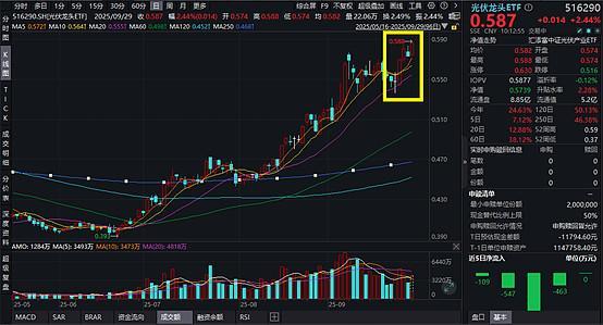 截至2025年9月29日 10:12,$光伏龙头ETF(516290)上涨2.44%,盘中价格创阶段新高。