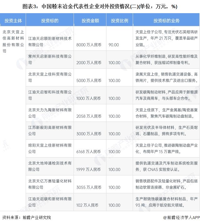 从几家代表性企业的对外投资来看,大型粉末冶金企业通过设立子公司从事产业链延伸业务,包括从事环境保护项目投资、运营等,或从事环境检测业务、技术研发等业务。