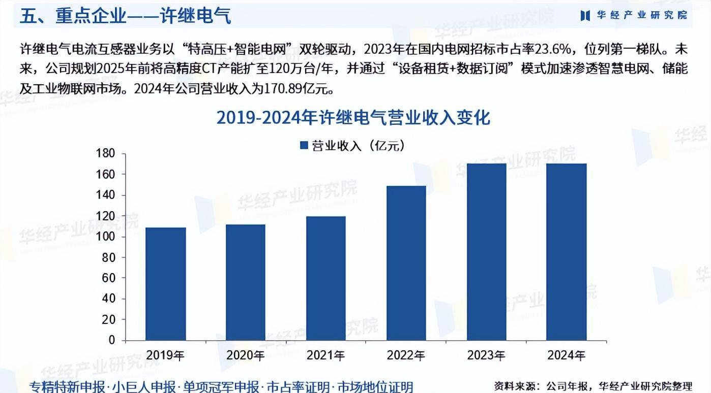 许继电气电流互感器业务以“特高压+智能电网”双轮驱动,2023年在国内电网招标市占率23.6%,位列第一梯队。未来,公司规划2025年前将高精度CT产能扩至120万台/年,并通过“设备租赁+数据订阅”模式加速渗透智慧电网、储能及工业物联网市场。2024年公司营业收入为170.89亿元。