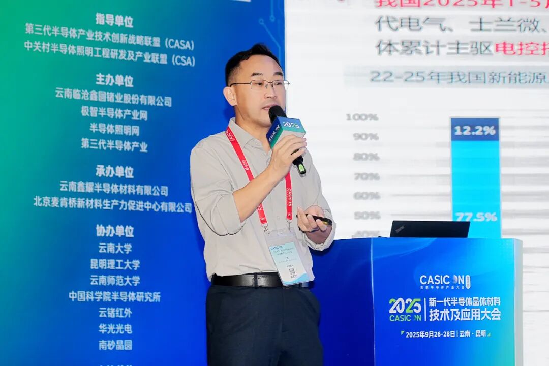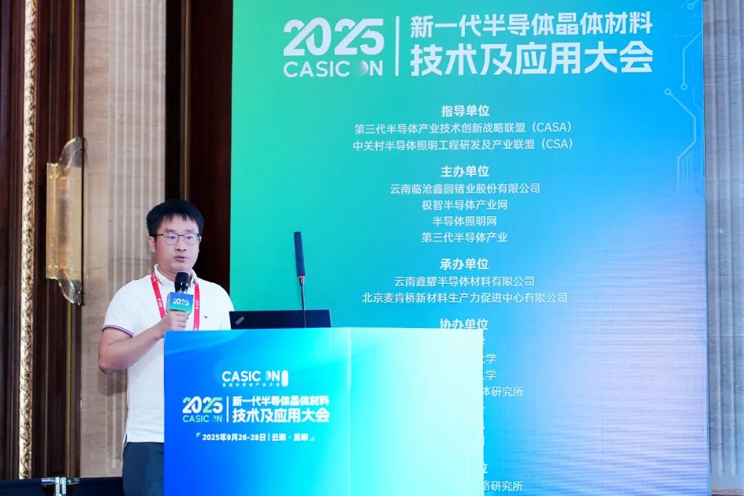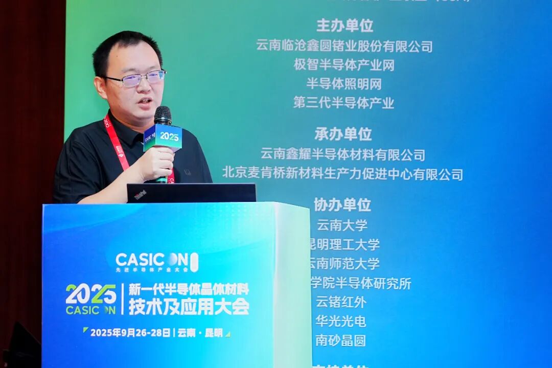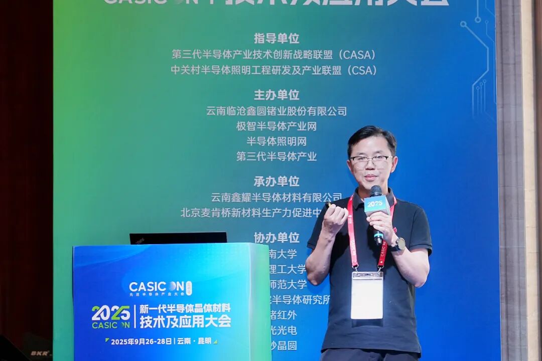 9月26-28日,2025新一代半导体晶体材料技术及应用大会在昆明召开。本次会议在第三代半导体产业技术创新战略联盟(CASA)、中关村半导体照明工程研发及产业联盟(CSA)指导下,由云南临沧鑫圆锗业股份有限公司、极智半导体产业网、半导体照明网、第三代半导体产业主办。云南鑫耀半导体材料有限公司、北京麦肯桥新材料生产力促进中心有限公司承办。云南大学、昆明理工大学、云南师范大学、中国科学院半导体研究所、云锗红外、华光光电、南砂晶圆等单位协办,赛迪智库集成电路研究所、山东大学、晶体材料全国重点实验室、山东省高功率半导体激光与应用重点实验室等支持。