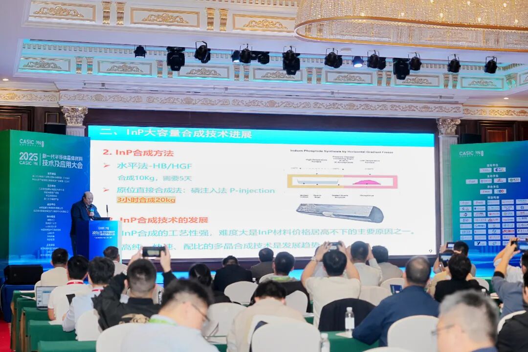 磷化铟是光电子产业“隐形基石”,发展备受关注。中国电子科技集团公司首席专家、第十三研究所研究员孙聂枫做了“高质量、大尺寸磷化铟单晶制备技术及应用”的主题报告,分享了最新研究进展。