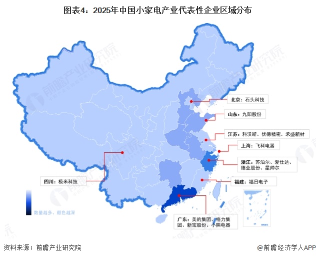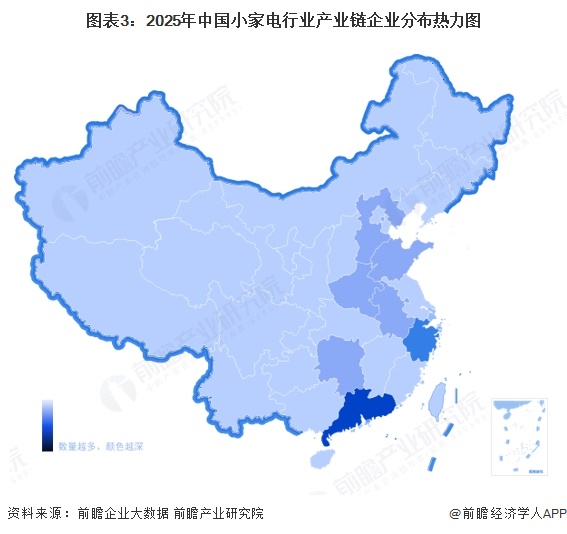 小家电产业链区域热力地图:广东省分布最集中从我国小家电产业企业区域分布来看,小家电行业产业链企业主要分布在广东省和东部沿海地区,包括浙江、山东、河北、河南等地。