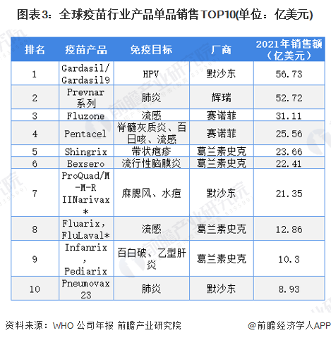 自2006年全球首款HPV疫苗(默沙东四价疫苗)上市以来,该领域长期由默沙东、葛兰素史克等国际巨头主导。2021年,全球HPV疫苗市场规模达60亿美元,其中默沙东产品以56.73亿美元收入领跑。
