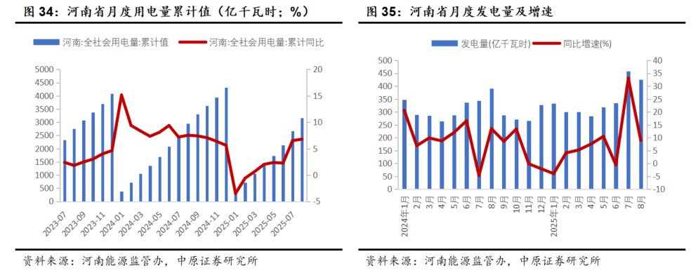 需求端:2025年8月,河南全省全社会用电量494.46亿千瓦时,同比增加8.25%。