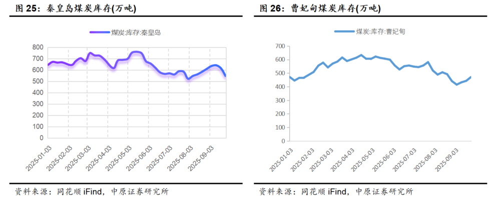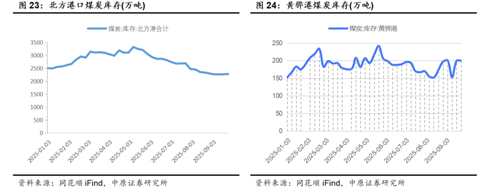 库存:2025年9月26日,北方港口煤炭库存合计2279万吨,本月以来减少25万吨。