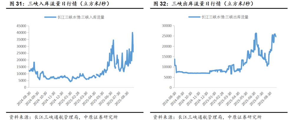 三峡来水情况明显好转。根据长江三峡通航管理局数据,2025年9月28日,三峡入库流量为21000立方米/秒,出库流量为28700立方米/秒,9月以来三峡入、出库日均流量较2024年同期日均流量分别增加91%、183%。