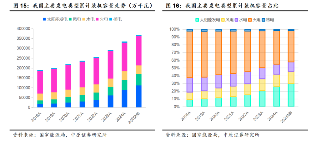 装机容量:截至2025年8月底,风电、太阳能装机占比45.92%。