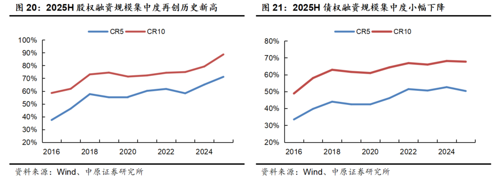 4.2. 2025H股权融资集中度再创历史新高,债权融资集中度小幅下降