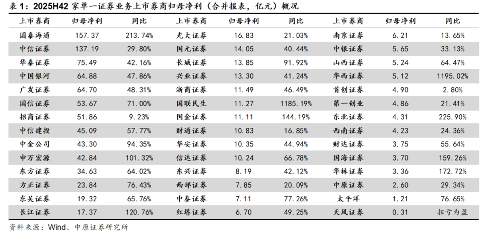 1.2. 2025H上市券商经营业绩明显改善,且分化现象仍较为明显