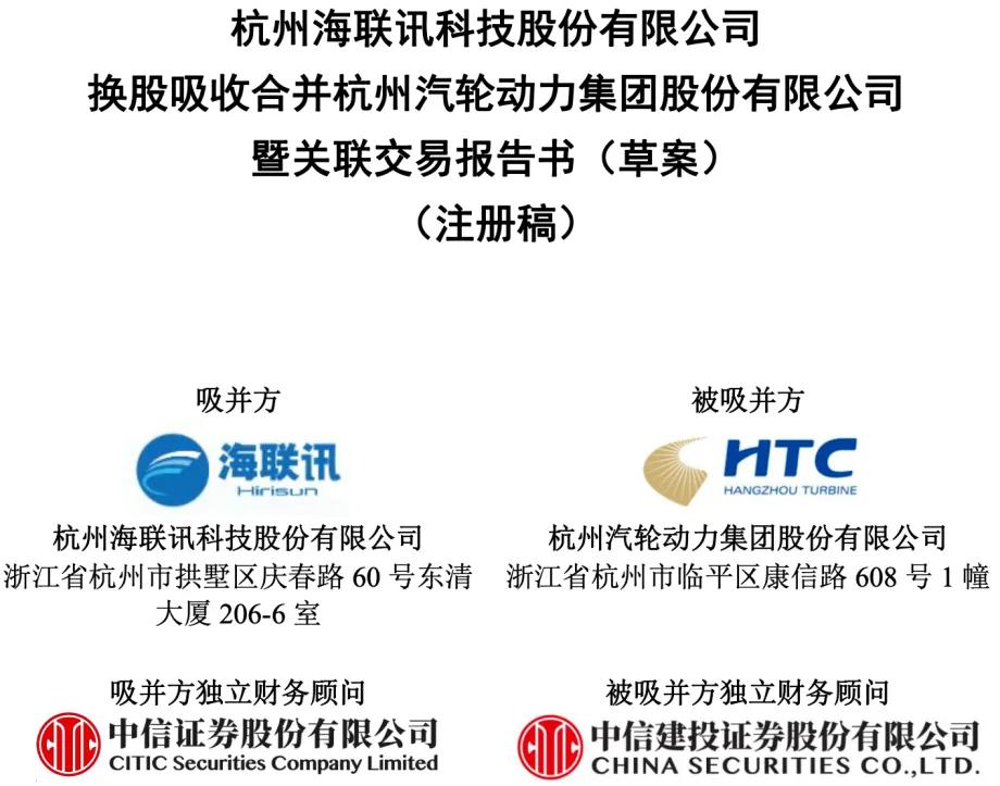 根据9月披露的交易报告书草案,海联讯以发行A股股票方式换股吸收合并杭汽轮,海联讯为吸收合并方,杭汽轮为被吸收合并方,即海联讯向杭汽轮的全体换股股东发行A股股票,交换该等股东所持有的杭汽轮股票。本次换股吸收合并完成后,杭汽轮将终止上市并注销法人资格。